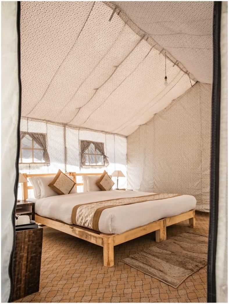 Guests can take in the ambience of the surroundings from an outdoor dining area. The luxury tent offers bed linen, towels and housekeeping service.